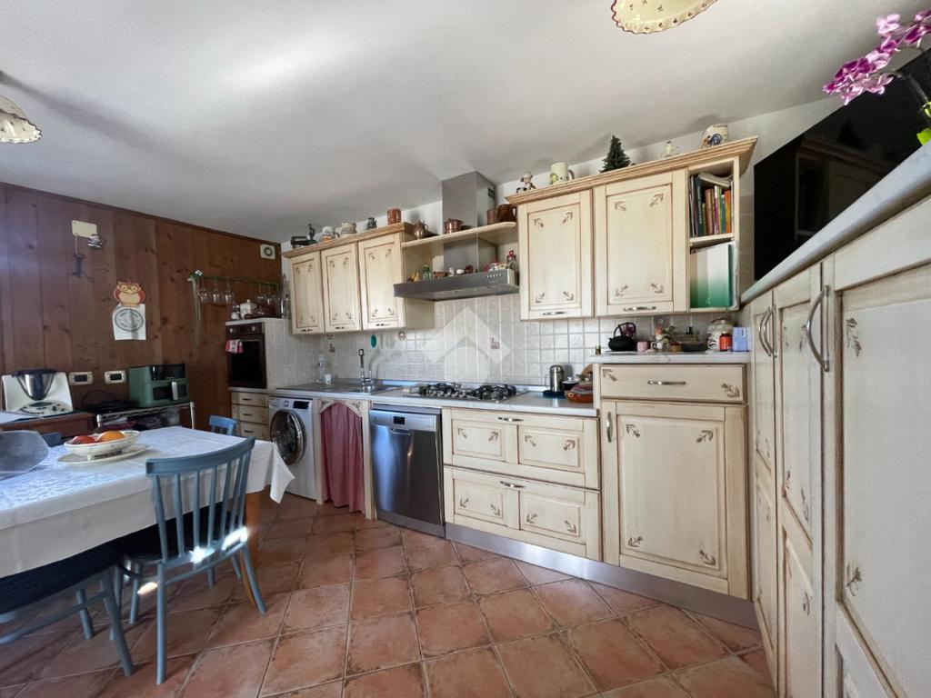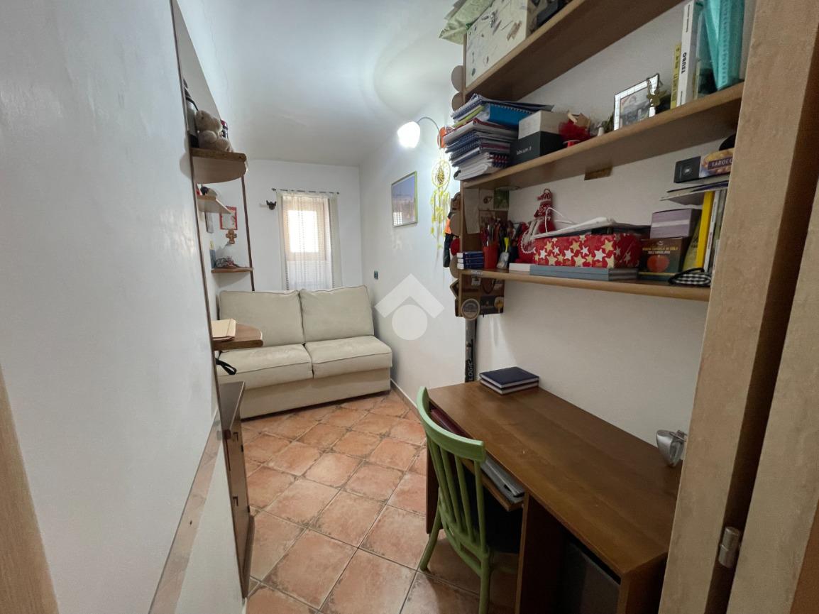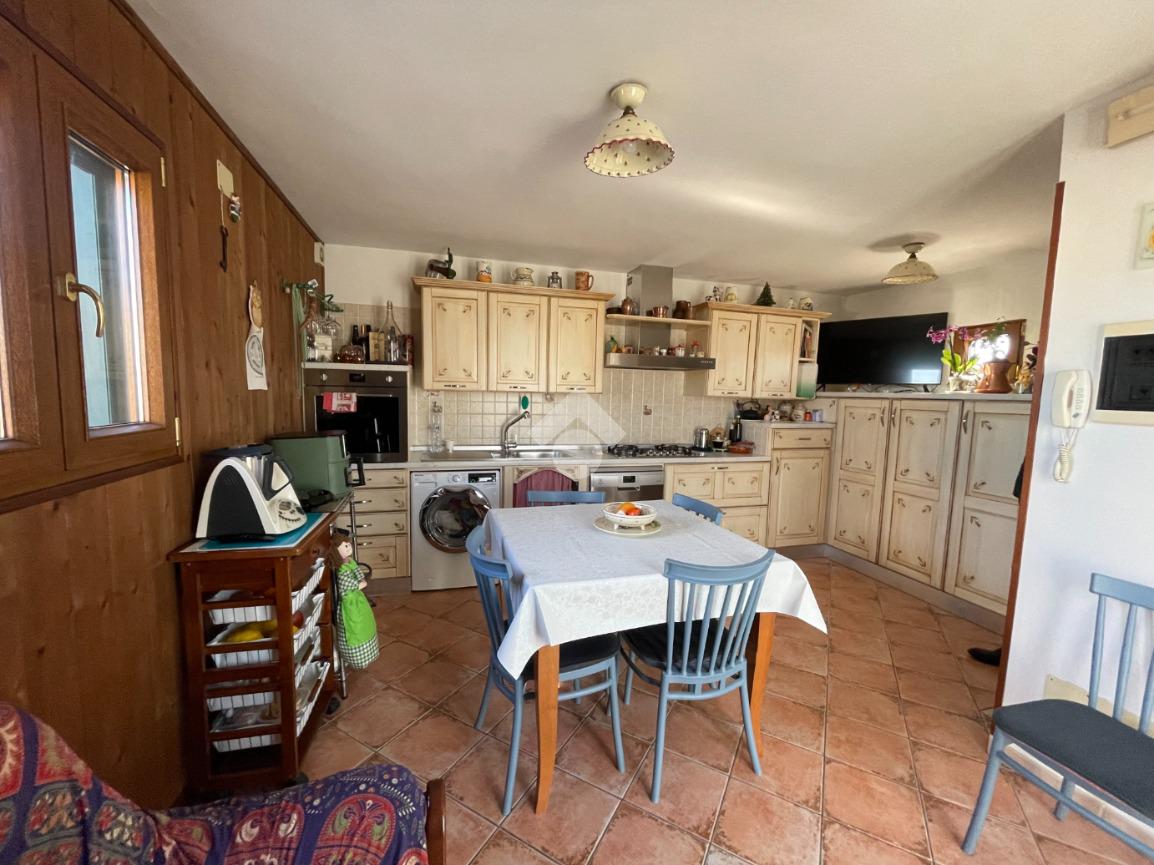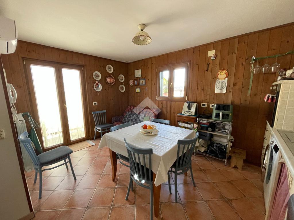 Al piano superiore troviamo una cucina abitabile che conduce direttamente al vero punto di forza della casa: uno splendido terrazzo pianeggiante e panoramico, perfetto per momenti di relax e convivialità all’aperto.